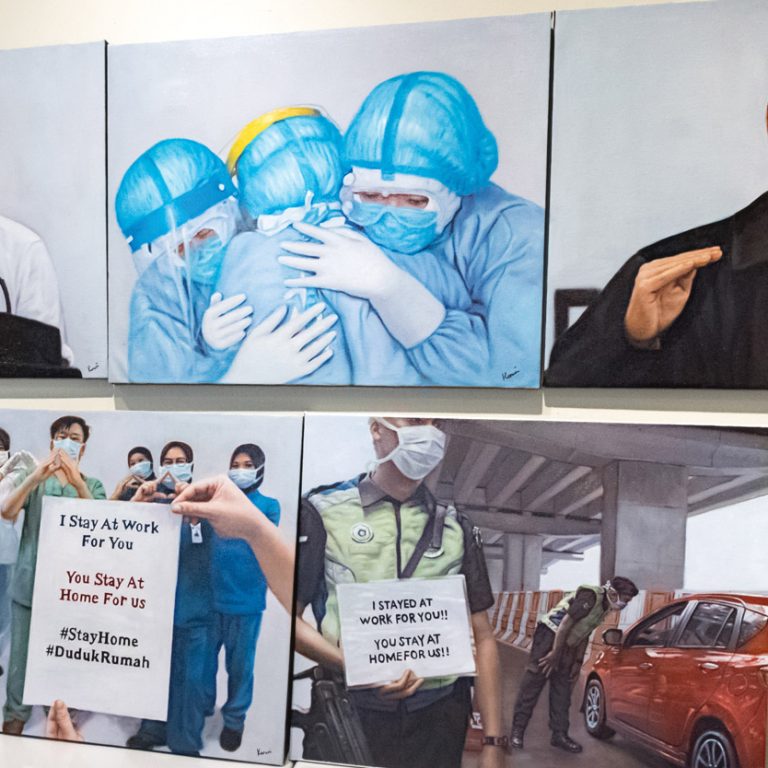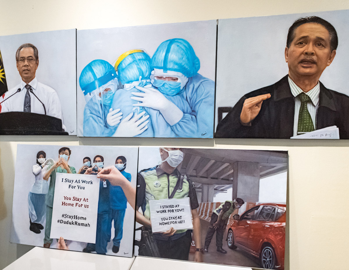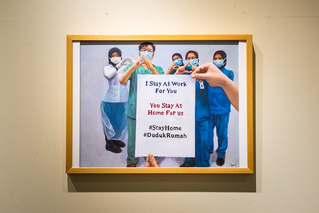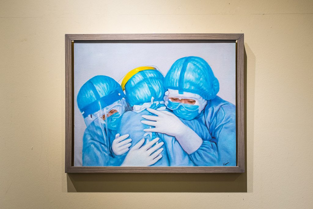我首先要感谢受到(爱马慈善机构)的邀請。把我的5幅油画和一幅沙画艺术作品,以“用艺术守护前线英雄”筹款活动的名义,希望可以达到抛砖引玉之效。为前线人员和受到新冠病毒疫情的受害者尽最大的力量去扶助。